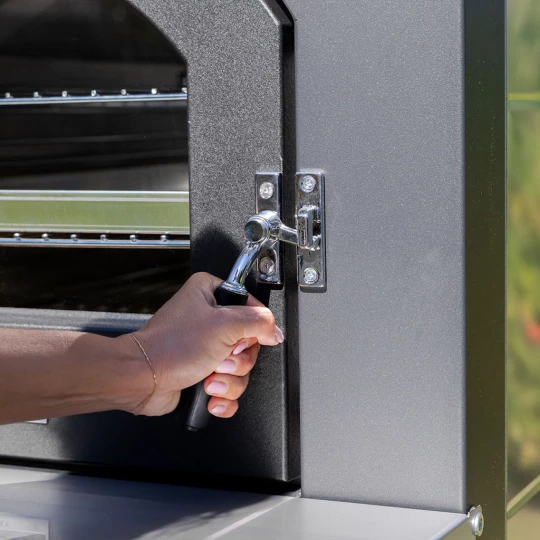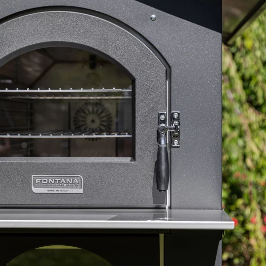 Prawdziwą innowacją jest sterowanie cyfrowe: analogowy termometr i minutnik zastąpiono nowoczesnym, intuicyjnym wyświetlaczem. Pozwala on kontrolować temperaturę, ustawiać czasy pieczenia, włączać oświetlenie wewnętrzne oraz wentylator. Wentylator ma trzy prędkości, zaprojektowane tak, aby dopasować moc do różnych rozmiarów pieca.